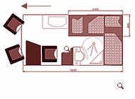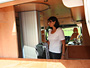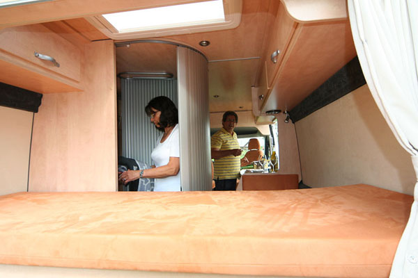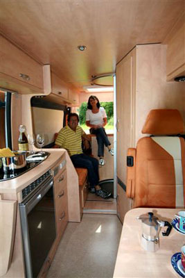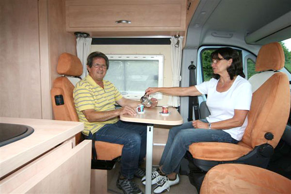 Fahrer- und Beifahrersitz drehbar, Sitzbezüge für Originalsitze in Wohnraumstoff, jeweils eine Armlehne |